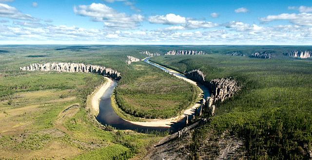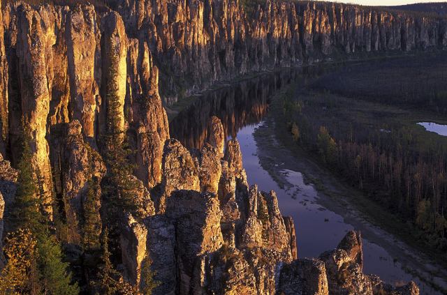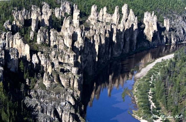 Это самая известная достопримечательность Якутии. Высокие скалы вдоль берега протянулись на 40 к м. – зрелище, действительно впечатляющее. Похожи на застывших великанов.