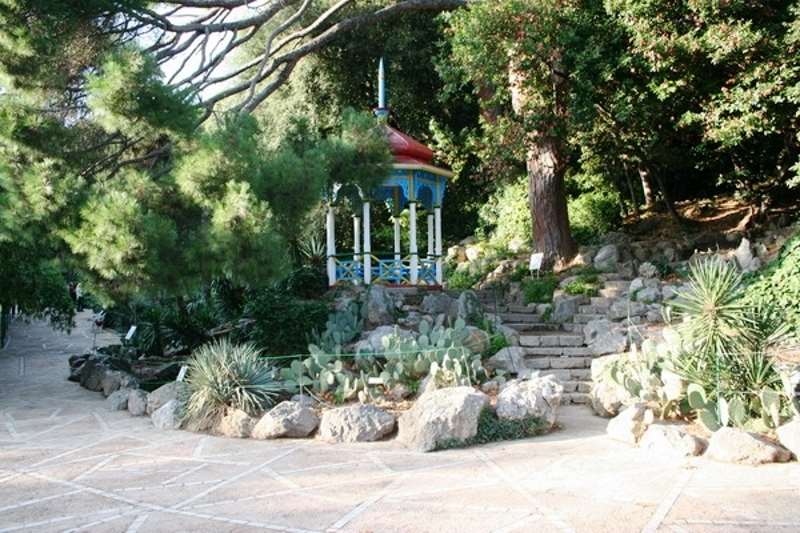 Ботанический сад был заложен при императоре Александре I в 1812 году. Место выбрали очень подходящее цели. Было задумано собрать воедино растения со всего мира, а поскольку климат на ЮБК наиболее подходящий для этого, сейчас здесь растет около 20 тыс. видов растений от сосны до агавы. Территория сада около 1000 га., но экскурсионная часть сада, конечно меньше. Тем не менее гулять здесь можно долго и не один день.