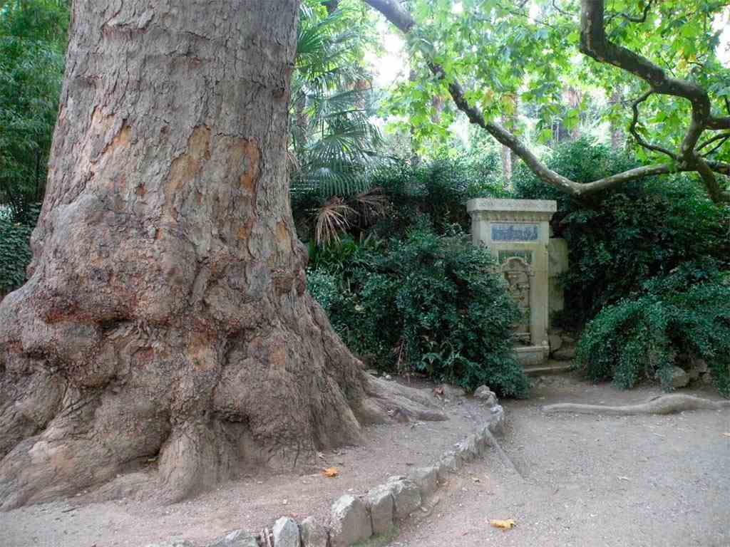 Около 200-летнего платана, который растет тут со дня основания сада установлен фонтан слез. Это копия бахчисарайского фонтана, которому Пушкин посвятил свое стихотворение.