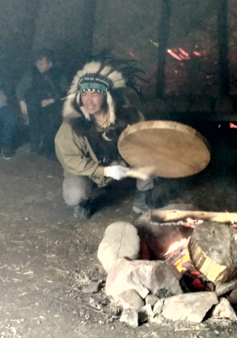 Дети были разукрашены в индейцев, а мне было поручено бить в бубен. Ну, обряд такой придумали для веселухи. Потом индейцы пошли играть в игры.