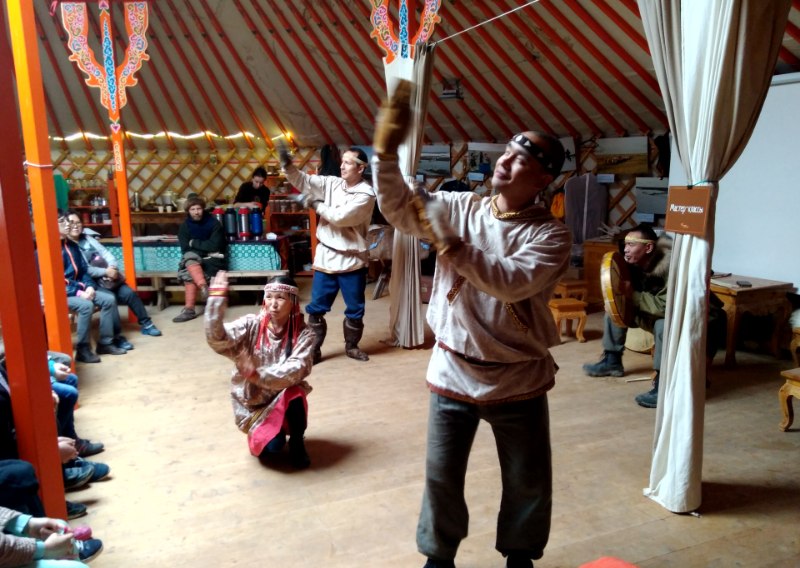Детям, конечно, больше всего понравились животные. Особенно собаки хаски. Они настолько дружелюбны, что дети с ними обнимались, фоткались… Еле ушли от них. А мне понравилась экскурсия. Она очень познавательная. А экскурсовод Евгений просто актер от Бога. Он из чукчи перевоплощался в монгола, потом в индейца и т.д.