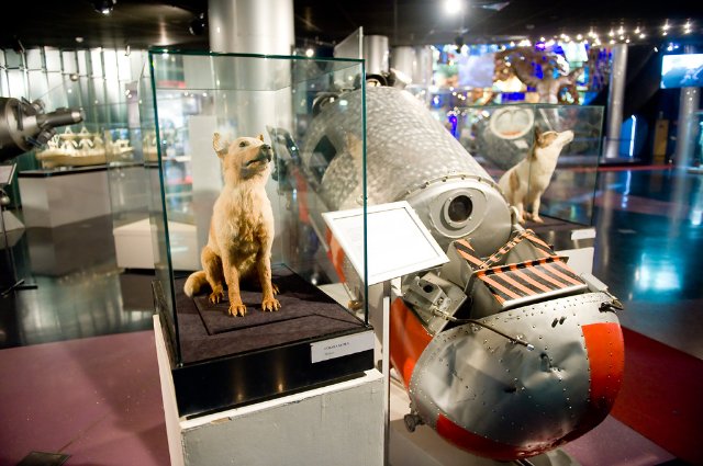 В первом зале размещена выставка первых спутников, первого корабля в котором запускали животных и много др. экспонатов первых лет освоения космоса.