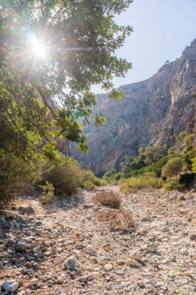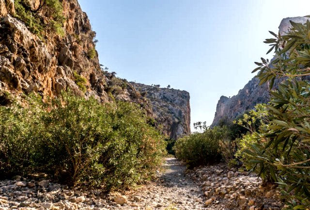 Длина ущелья примерно 1,5 км. Тропа в ущелье проходит по дну древней реки, которая протекала здесь в древности и впадала в Ливийское море.
