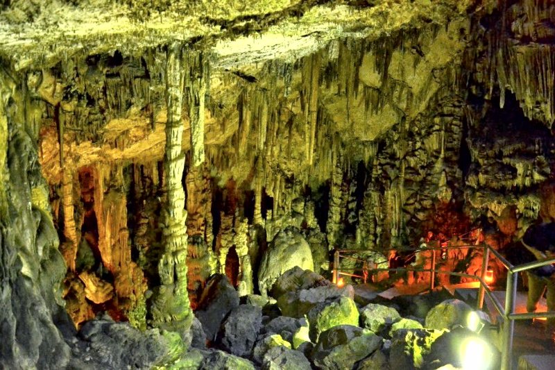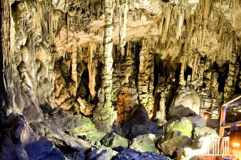 Сталактиты и сталагмиты создают необычайные композиции, придающие пещере Зевса загадочный и фантастический вид.