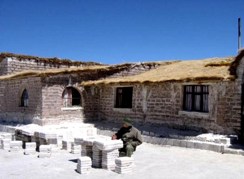 На Уюни для туристов есть мини-отель полностью сооруженный из соли. И стены и мебель в нем соленые…