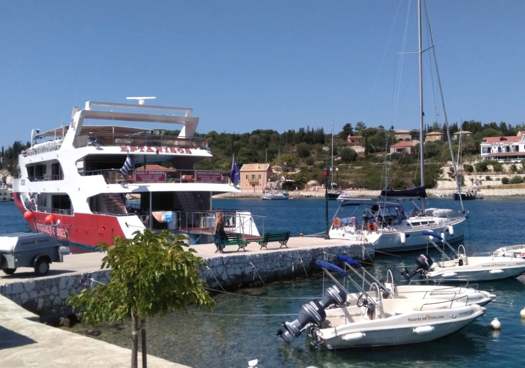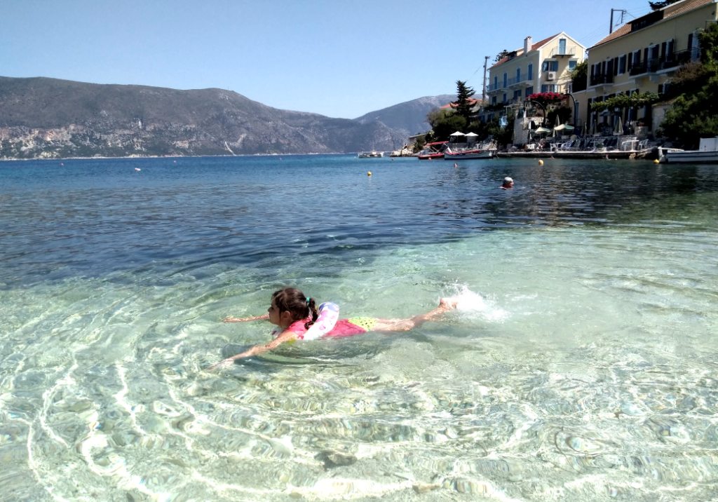Около часа занимает переход от Каламитци до порта Фискардо на острове Кефалонья. Дети успевают вздремнуть, вдыхая пьянящий морской воздух. Фискардо — самый северный порт острова.