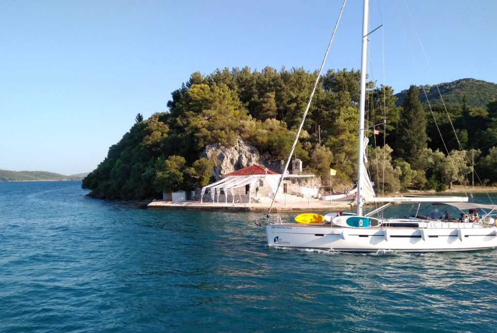 Обогнув остров Онассиса (такое второе название прижилось у греков) с восточного берега наш теплоход возвращался в Нидри.