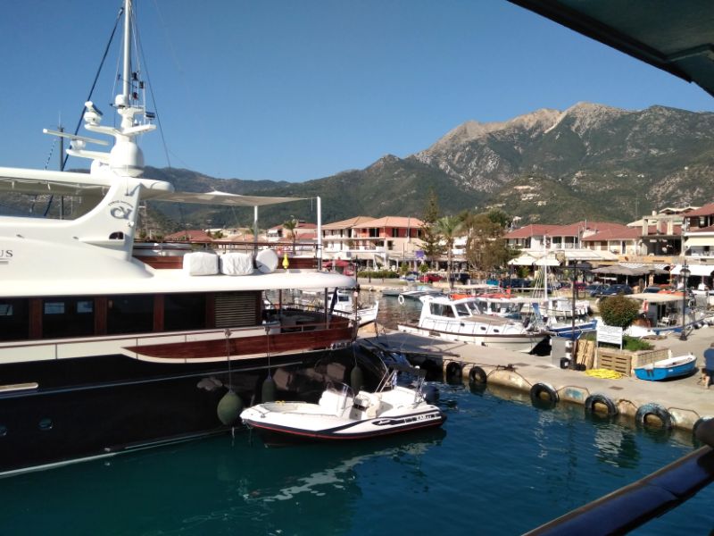 Теплоход заходит первым делом в поселок Василики на южном берегу острова Лефкада.