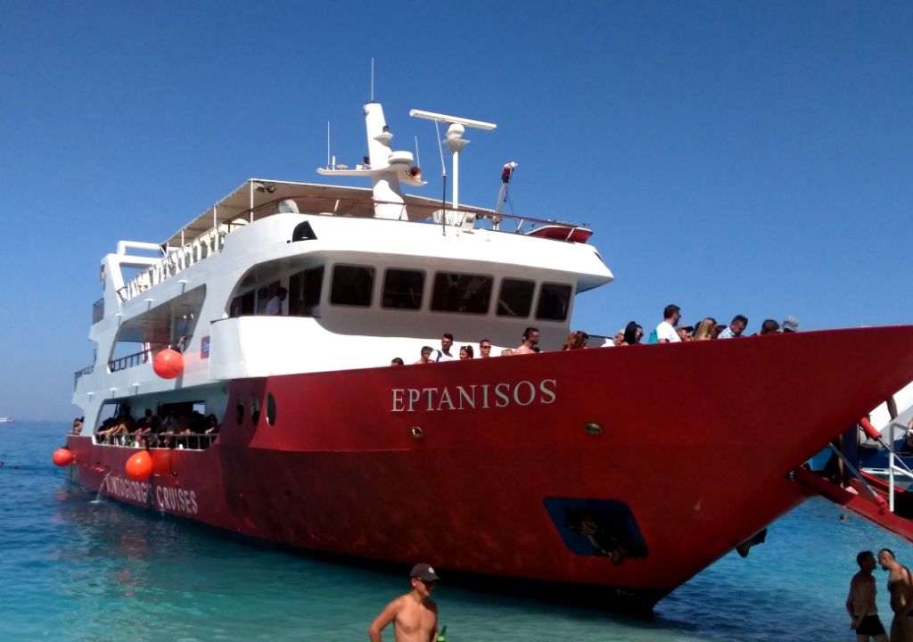 На обратном пути теплоход бросает якорь напротив пляжа Порто Каламитци (метрах в 100 от берега).