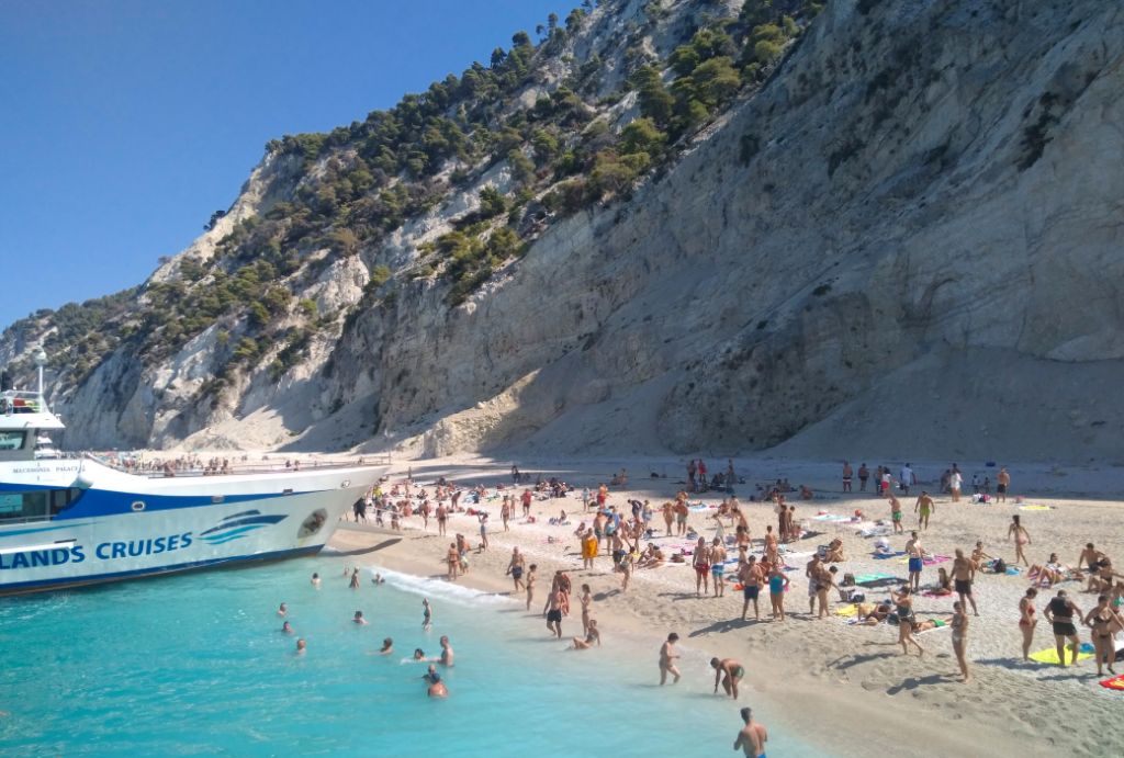 На о.Итака. теплоход подошел к одному из диких пляжей. Сюда люди попадают только морем, здесь в течение часа можно купаться метрах в пятидесяти от берега — на таком расстоянии останавливается круизный корабль.