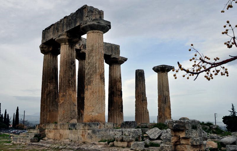 Руины этого, некогда процветающего города, находятся высоко на холме и смотрят одновременно на Саронический залив и на современный Коринф.