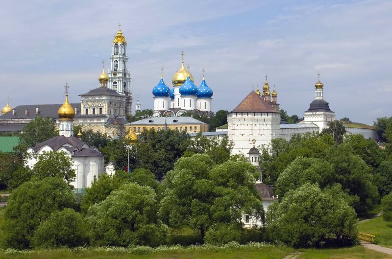Древнейшая постройка в Троице-Сергиевой Лавре — Троицкий собор (1422г), в котором находятся святые мощи Преподобного Сергия Радонежского. В иконостасе сохранились иконы Андрея Рублева,