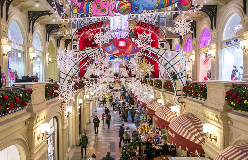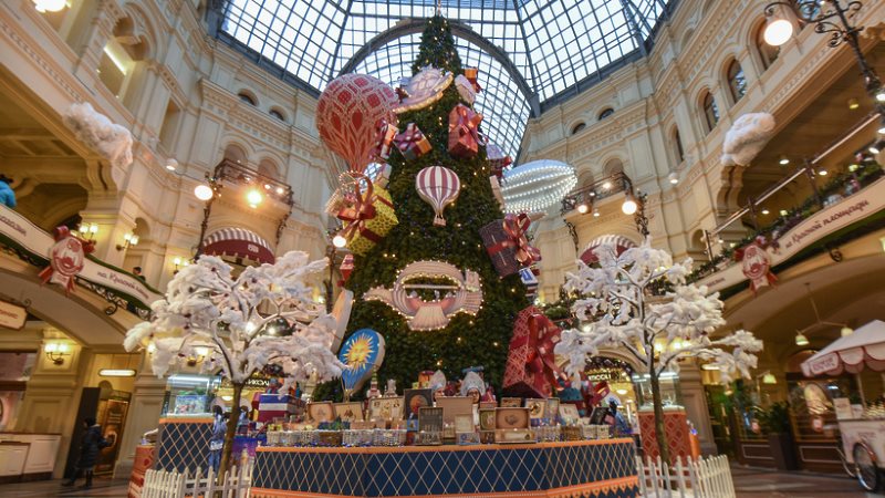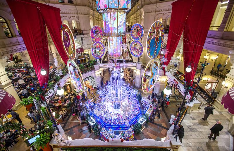 ГУМ всегда красиво украшается и снаружи и внутри.