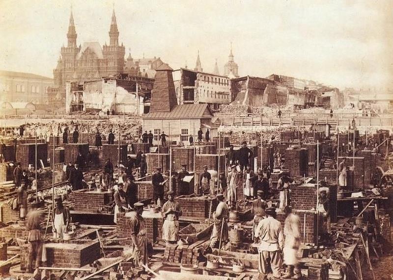 В ноябре 1888 года был объявлен закрытый архитектурный конкурс, на который поступило 23 проекта. В 1890 началось строительство Верхних торговых рядов на Красной площади (будущий ГУМ).