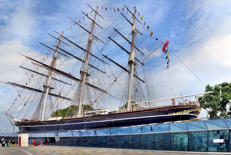 Это корабль-музей открытый в районе Гринвич. «Катти Сарк» — парусный грузовой клипер конца XIX века, участник знаменитых Чайных гонок. В наше время является памятником парусному флоту и символом морского могущества Британии.