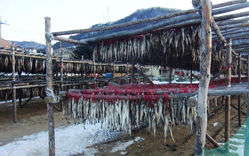 Пхенчхан также богат сооружениями для сушки минтая. Именно здесь, в горах, где дуют сильные и холодные ветра сушат минтай по правильной технологии.