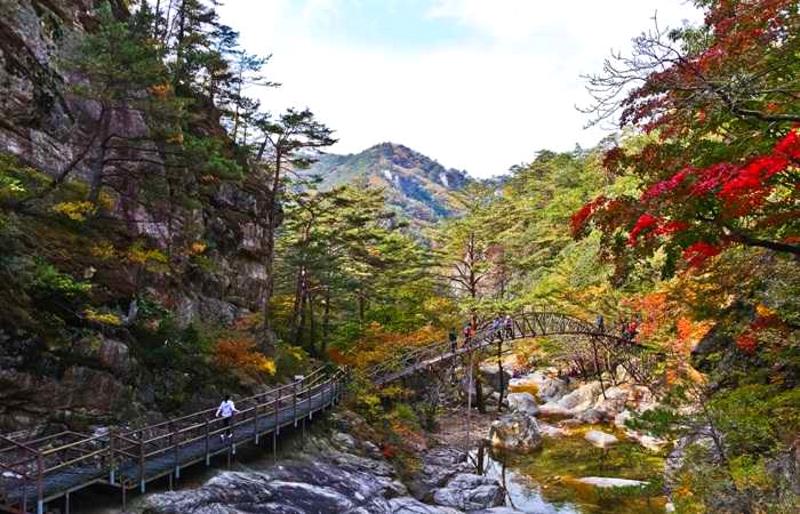 Одна из достопримечательностей парка в Пхенчхан — это беседка Пхальсокчон. Находится она в очень живописном месте парка, откуда открываются живописнейшие пейзажи местных гор.