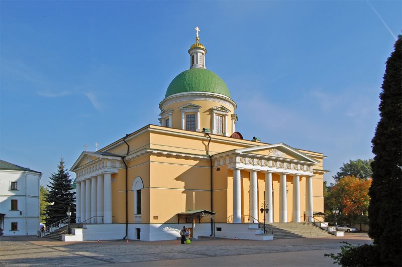 Троицкий собор сооружен в 1838 г., оформленный на фасадах тосканскими портиками и завершённый купольной ротондой, построен по проекту то ли Е. Д. Тюрина, отреставрирован и вновь освящен в 1986 г.