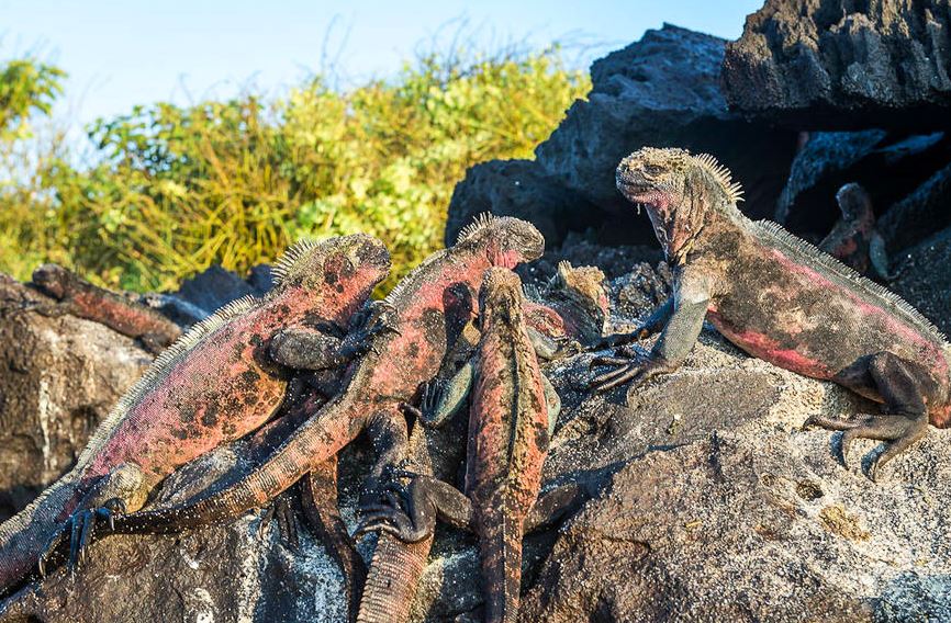 Еще один символ островов – морские игуаны. Чтобы их увидеть не придется за ними охотиться, или искать их на дне морском. Эти земноводные можно встретить практически везде: на пляже, в городе, в море… Они любят погреться на солнышке и сморкаться морской водой (из-за этого у них морды часто в белой пене).