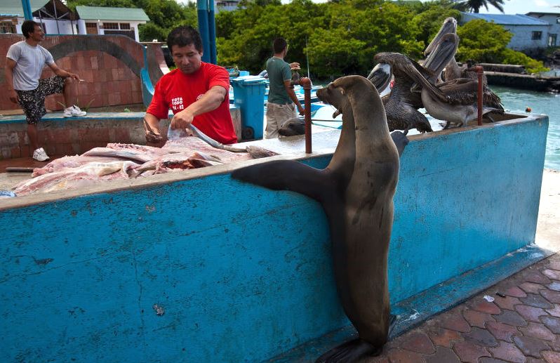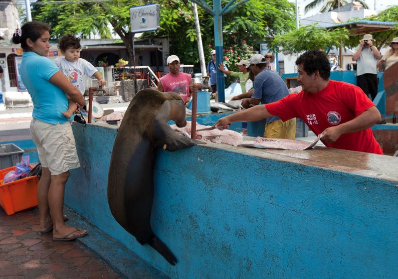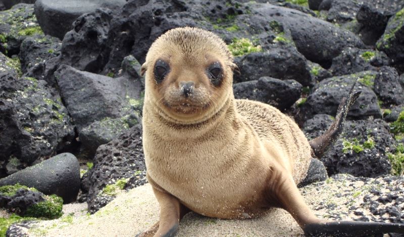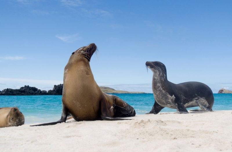 На маленьком острове Рабида есть интересный пляж с темно-красным песком. Здесь можно позагорать рядышком с морскими львами.