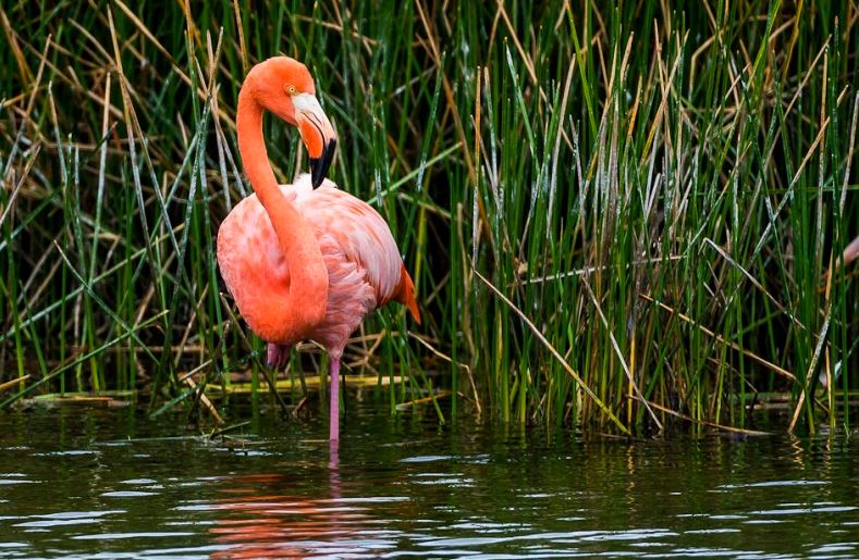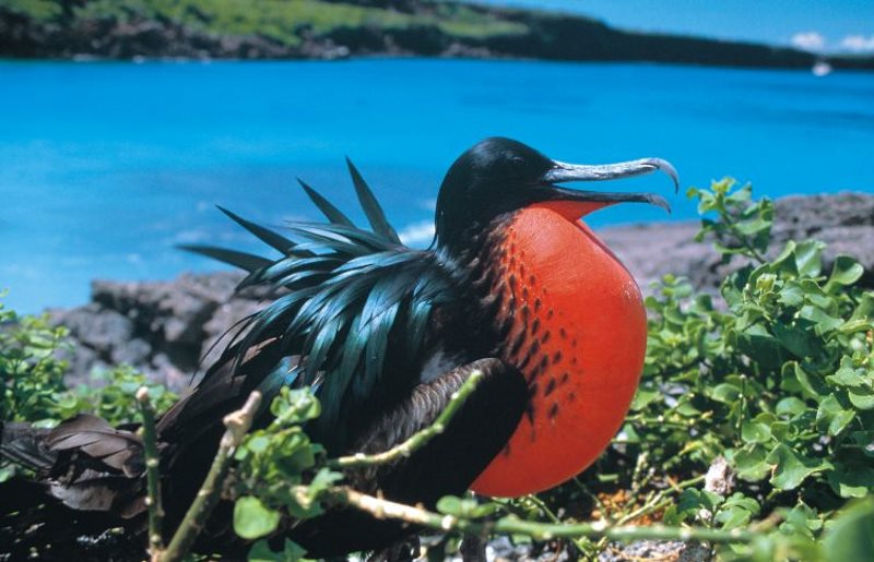 Красные галапагосские фламинго и фрегаты, голубоногие олуши также являются уникальными видами.