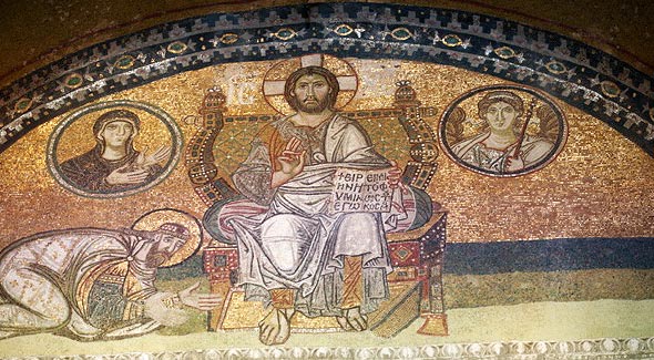 В правление императора Льва VI люнет нарфика украсили мозаикой с изображением Иисуса Христа, сидящего на престоле с Евангелием, открытом на словах «Мир вам. Я свет миру», в левой руке и благословляющего правой. По сторонам от него в медальонах изображены полуфигуры Богородицы и архангела Михаила. Слева от Иисуса изобразили коленопреклоненный император Лев VI.