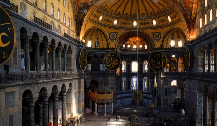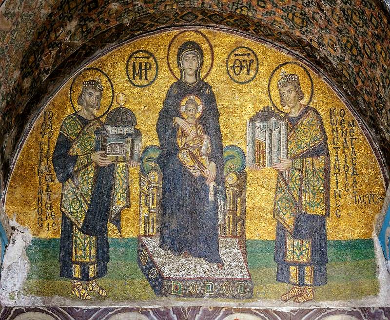 Собор святой Софии в Константинополе, нынешнем Стамбуле, перестраивался три раза. Первое строительство в 330 году нашей эры начал сам Константин Великий — император Византии. В 360 году оно было закончено, храм назвали «Мегало Еклесия» — Большая церковь. Но в 404 году она, к сожалению, сгорела при пожаре. Однако, о Великом соборе не забыли: на деревянном фундаменте бывшего грандиозного сооружения строится новое, более устойчивое здание храма. В новом храме начались церковные богослужения уже 10 октября 416 года. В 532 году великий храм снова пострадал от кровавого мятежа и был снова отстроен — императором Юстинианом, в 532-537 гг. Именно такой храм, постройки 532-537 годов возвышается сегодня в Стамбуле.